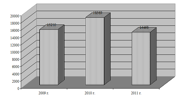 На рисунке 2.2.1 представлена динамика выручки от реализации согласно таблице 2.2.1 за 2009 - 2011 гг.