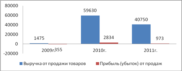Рис. 1. Изменение выручки и прибыли от продаж в 2009–20011 годах