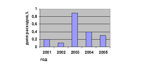 Рисунок 1. Удельный вес расходов на обслуживание государственного долга республики Башкортостан в общем объеме расходов бюджета