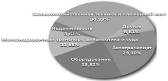 Кризис оказал значительное влияние на структуру рынка лизинга. На первый план вышли те сегменты, где работают лизинговые компании, которые, так или иначе, поддерживаются государством. Самым крупным сегментом по объему сделок стал сегмент сельскохозяйственной техники и племенного скота. Данный сегмент невозможно рассматривать в отрыве от компании «Росагролизинг», на чью долю приходится примерно 99% от общего объема и количества сделок, которая является одним из главных инструментов государства по поддержке агропромышленного комплекса России.[13]