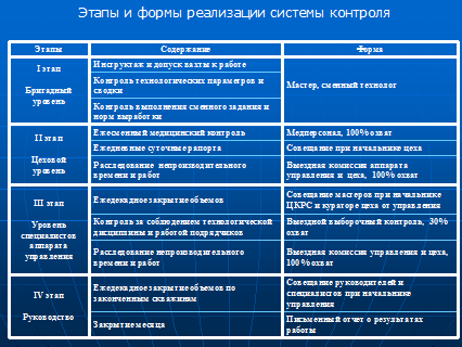 Внедрение системы мониторинга производства в УПНП и КРС позволяет выполнять оперативный учет и контроль по всем показателям производства, этапы и формы реализации системы контроля начинаются с бригадного уровня (рисунок 3.1.3.)
