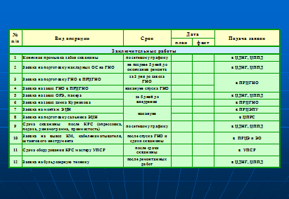 Составленный сетевой график на КРС, по 8-часовым сменам является сменным заданием мастера для вахты.