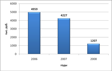 Значительно снизились в динамике прочие доходы предприятия, так если в 2006 году значение показателя составляло 760 тыс. руб., то в 2007 и 2008 году 45 и 148 тыс. руб. соответственно.