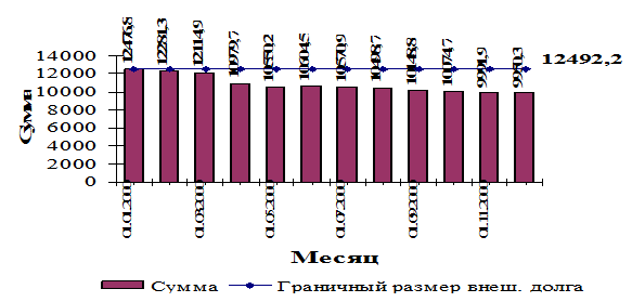 Граничный размер государственного внешнего долга равняется 2492,2 млн. $