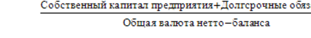 Коэффициент концентрации заемного капитала — удельный вес заемных средств в общей валюте нетто-баланса — показывает, какая часть активов предприятия сформирована за счет заемных средств долгосрочного и краткосрочного характера: