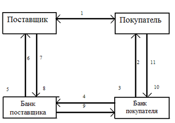 4 – перечисление средств с банка покупателя в банк поставщика;