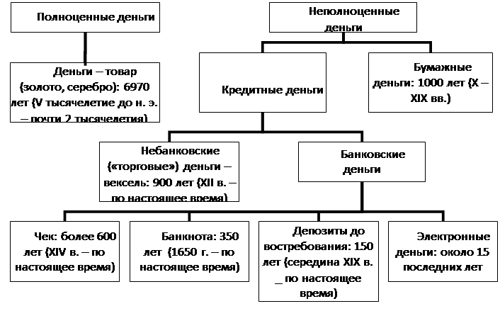 Исходя из сказанного и абстрагируясь от ряда частностей, развитие форм и видов денежных средств можно представить в виде схемы (рисунок 2.1).