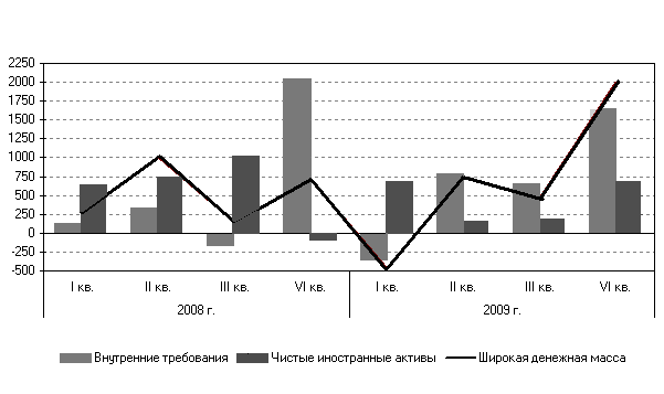 Рис. 2.3. Основные источники изменения широкой денежной массы в 2008–2009 гг. (прирост за квартал, млрд. руб.) [31]