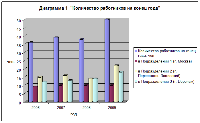 Об этом свидетельствует диаграмма «Количество работников на конец года».
