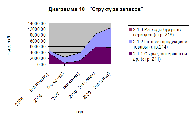 Из диаграммы 10 видно, что основную часть запасов составляют сырье и материалы и готовая продукция.