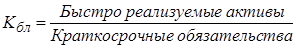 Быстрореализуемые активы – это сумма наиболее ликвидных активов и краткосрочной дебиторской задолженности. Норматив данного коэффициента: 0,7-0,8.
