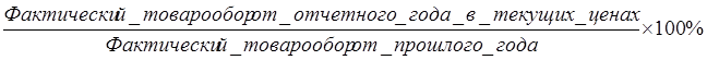 Итак, рассмотрим динамику показателя объема реализованной продукции. Товарооборот – это важнейший показатель торгового предприятия. Его можно рассматривать как результат деятельности предприятия торговли и от него зависит объем валового дохода и прибыли, характеризующей эффективность торговой деятельности. Динамика роста товарооборота в текущих ценах (Д) рассчитывается по формуле: