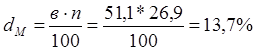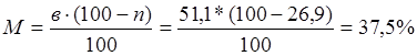 Доля затрат на материалы в себестоимости продукции (М, %) рассчитываем по формуле