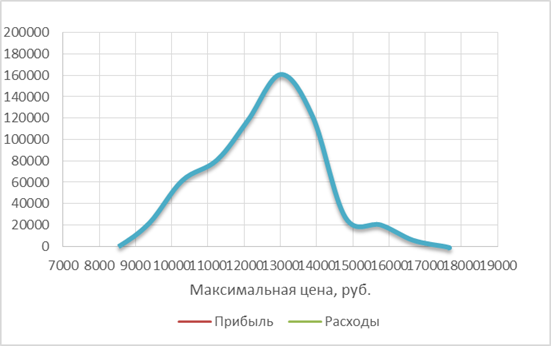 Рисунок 5. Прибыль предприятия при снижении цен на материалы