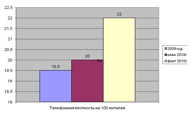 Рисунок 2 - Диаграмма телефонной плотности на 100 жителей РУТ