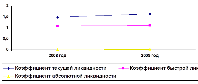 В анализируемом периоде коэффициент текущей ликвидности имел тенденцию к росту и изменился c 1,47 и до 1,64. Способность предприятия рассчитываться по своим текущим обязательствам возросла.
