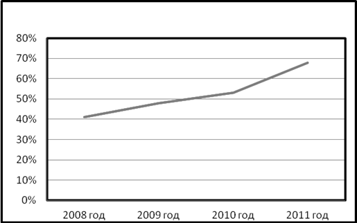 Рисунок 1. Динамика финансирования учреждений обороны 2008-2011 годах.