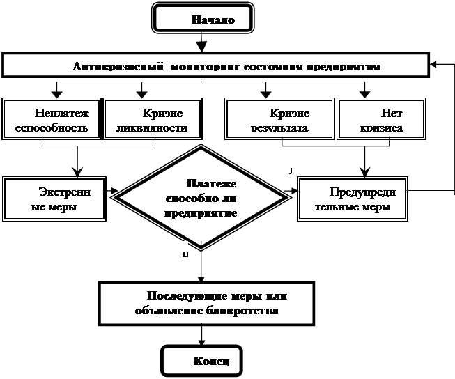 Кризис на предприятии можно понимать как незапланированный и нежелаемый, ограниченный по времени процесс, который в состоянии существенно помешать или даже сделать невозможным функционирование предприятия. Его следует рассматривать не как статическое состояние, а как процесс. Кризис предприятия в общем смысле представляет собой ограниченный по времени процесс.