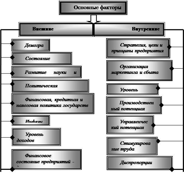 2) Внутренние (непосредственно зависящие от предприятия). (рисунок 2.2.) [31, с.112]