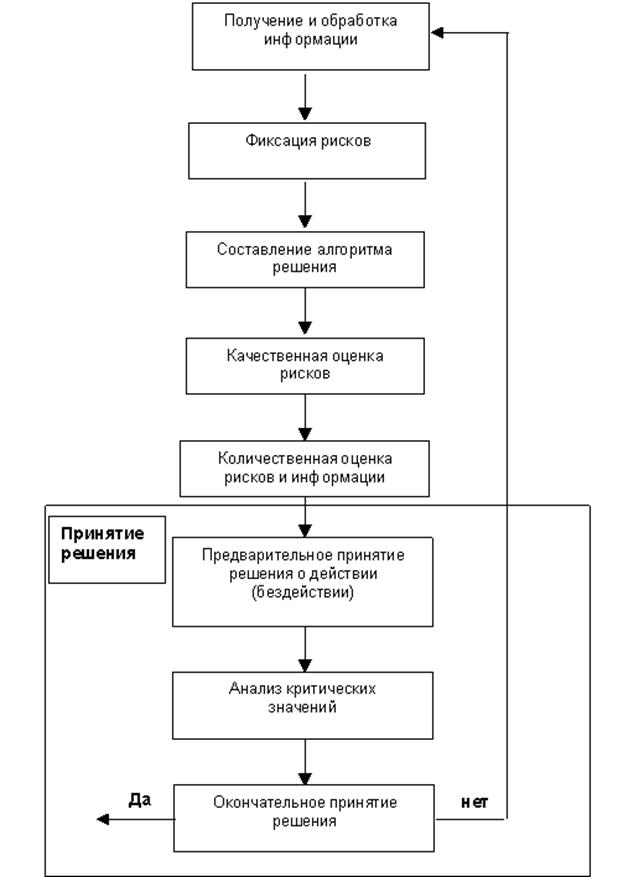 Данный этап в оценке рисков финансово-хозяйственной деятельности предназначен для поэтапного разделения планируемого решения на определенное количество более мелких и простых решений. Такое действие называется составлением алгоритма решения.