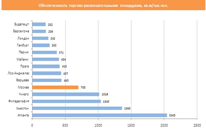 Рис. 2.1 Обеспеченность торгово-развлекательными площадями, кв.м/тыс.чел. [21]